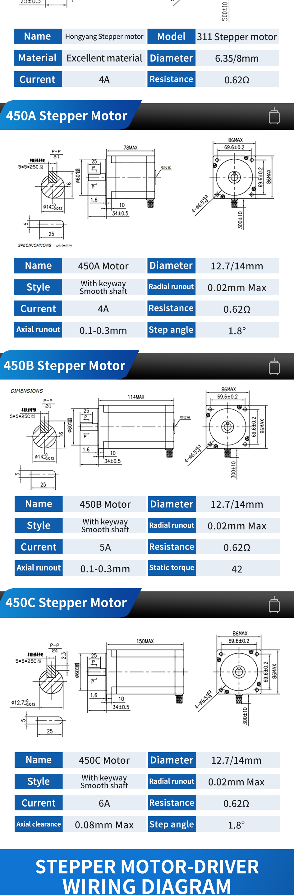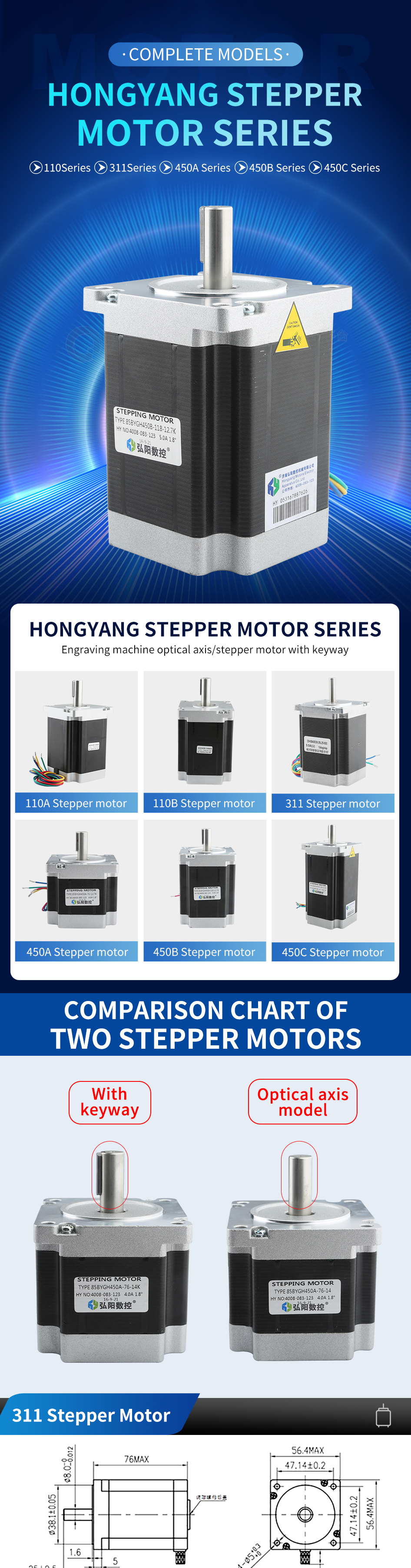 HONGYANG Stepper Motor 311/450/110 Series