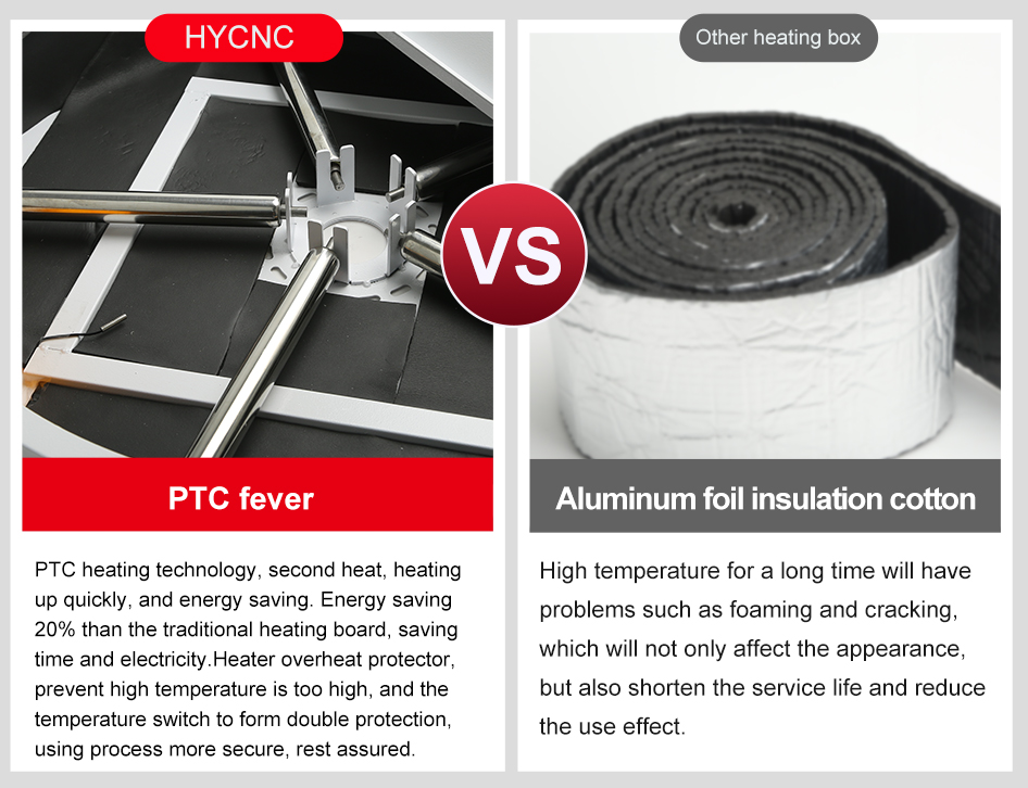 PTC heating technology, second heat, heating up quickly, and energy saving. Energy saving 20% than the traditional heating board, saving time and electricity.Heater overheat protector, prevent high temperature is too high, and the temperature switch to form double protection, using process more secure, rest assured.