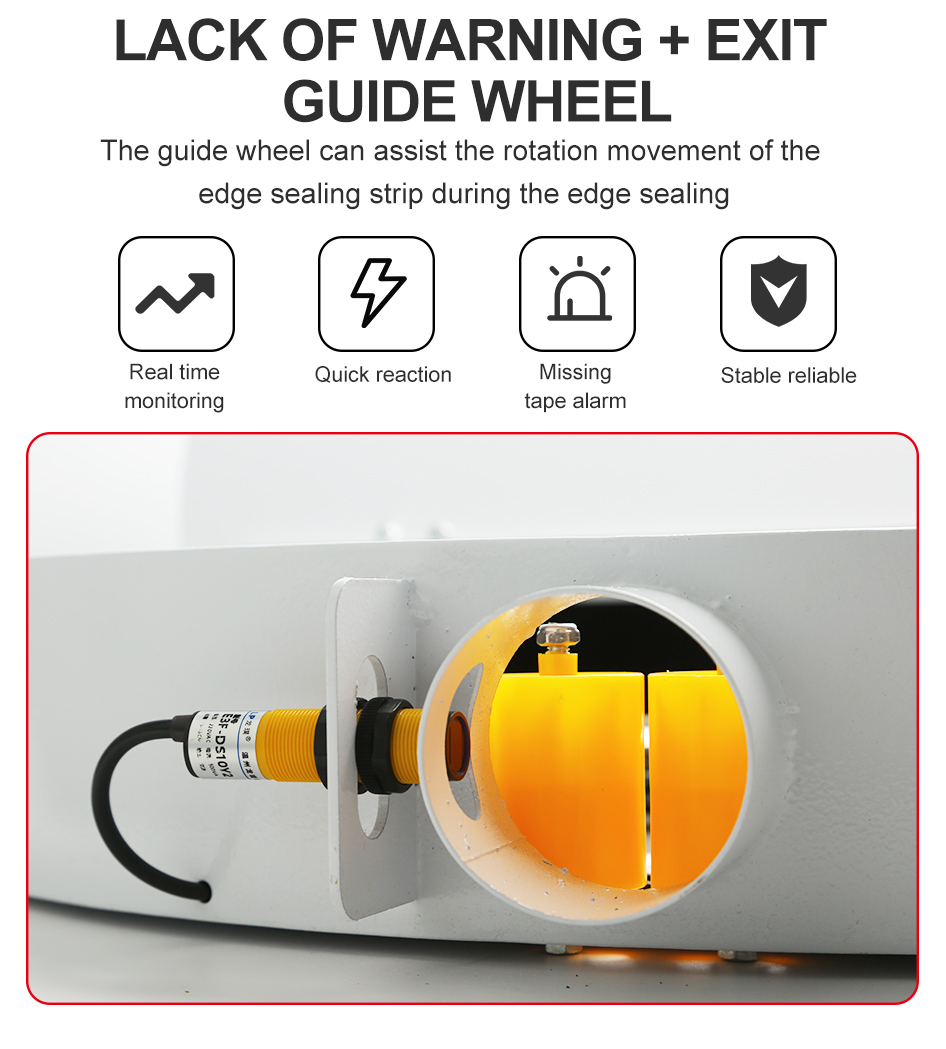The guide wheel can assist the rotation movement of the edge sealing strip during the edge sealing
