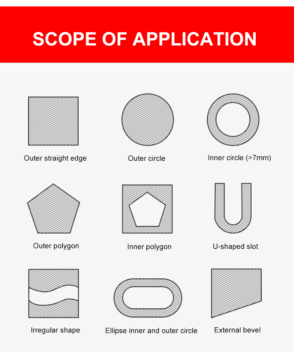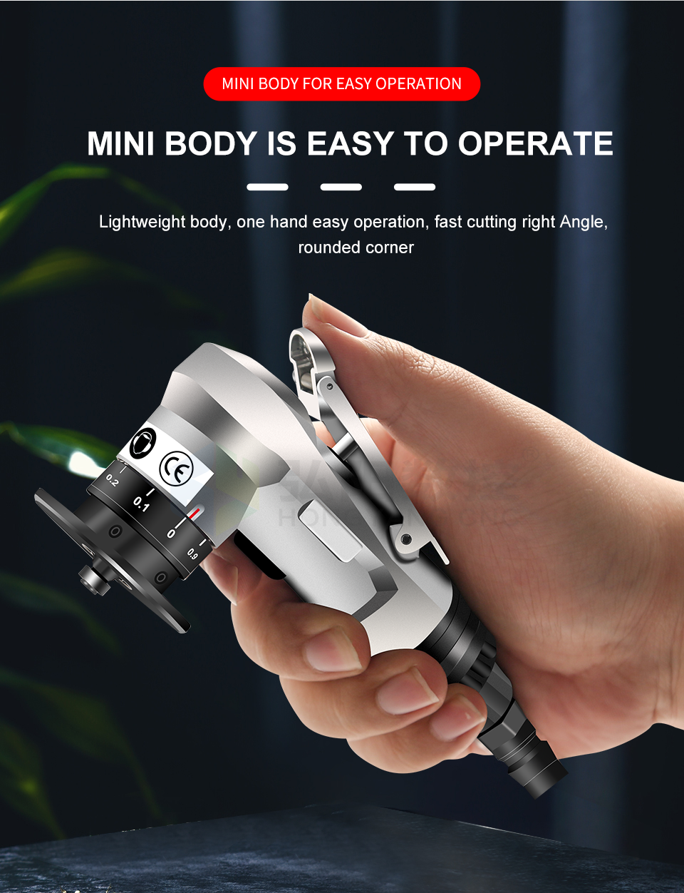 Small body, easy to use, quickly cut right angles, rounded corners.