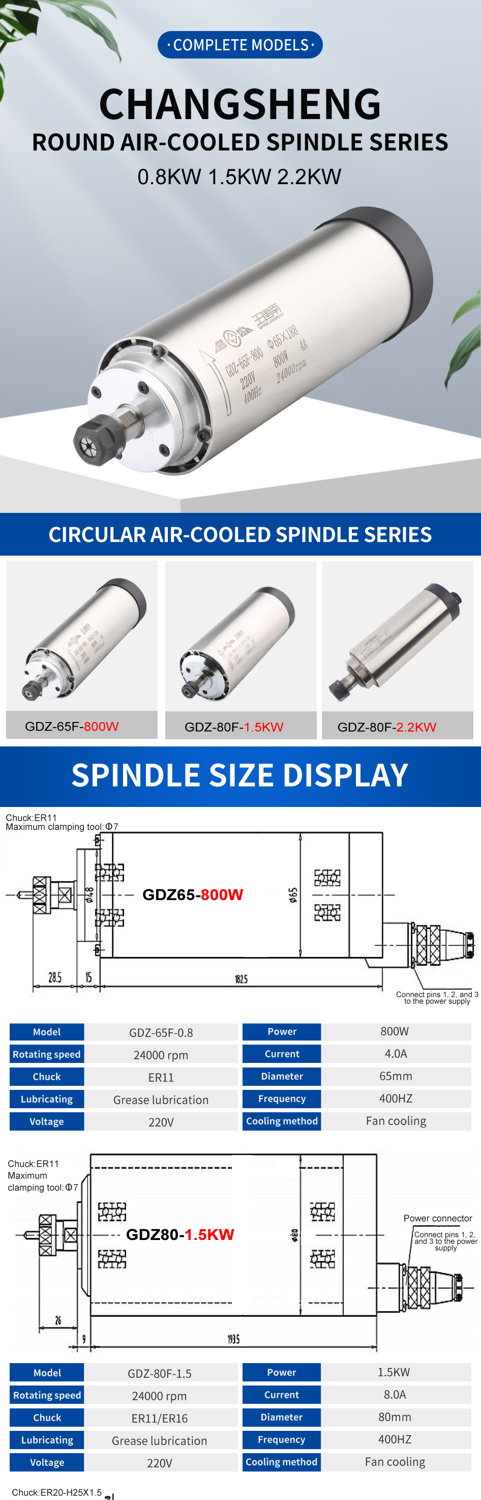CHANGSHENG Circular Air-cooled Spindle Series 0.8KW-2.2KW