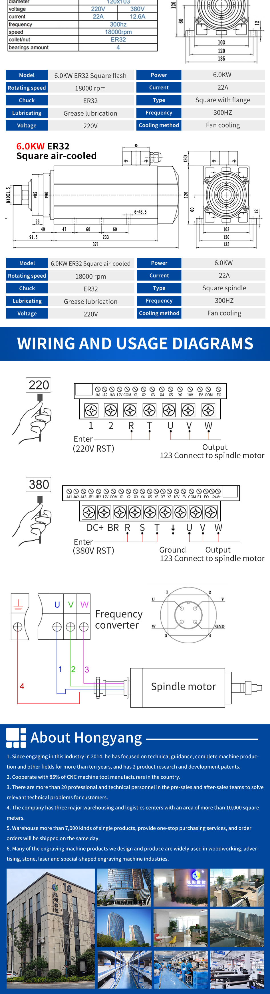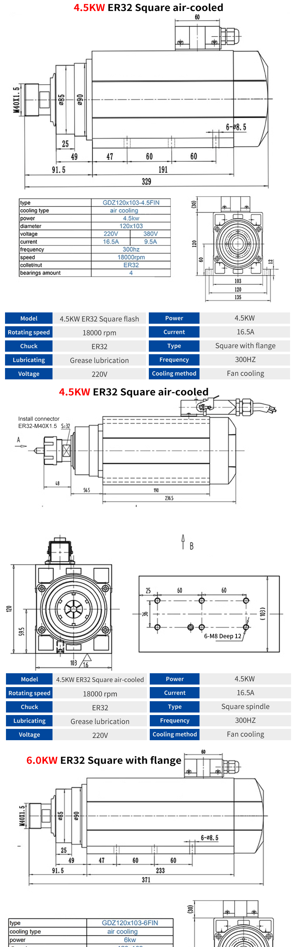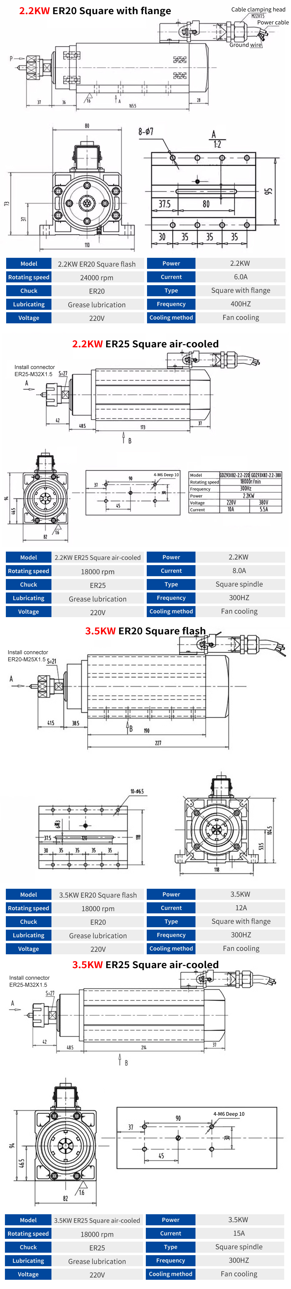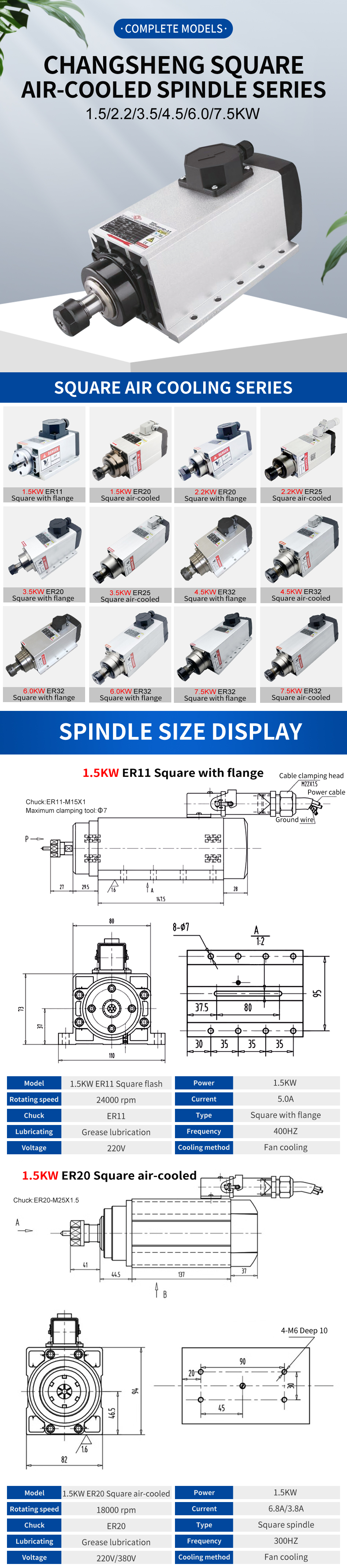 CHANGSHENG Square Air-cooled Spindle Series 1.5KW-7.5KW