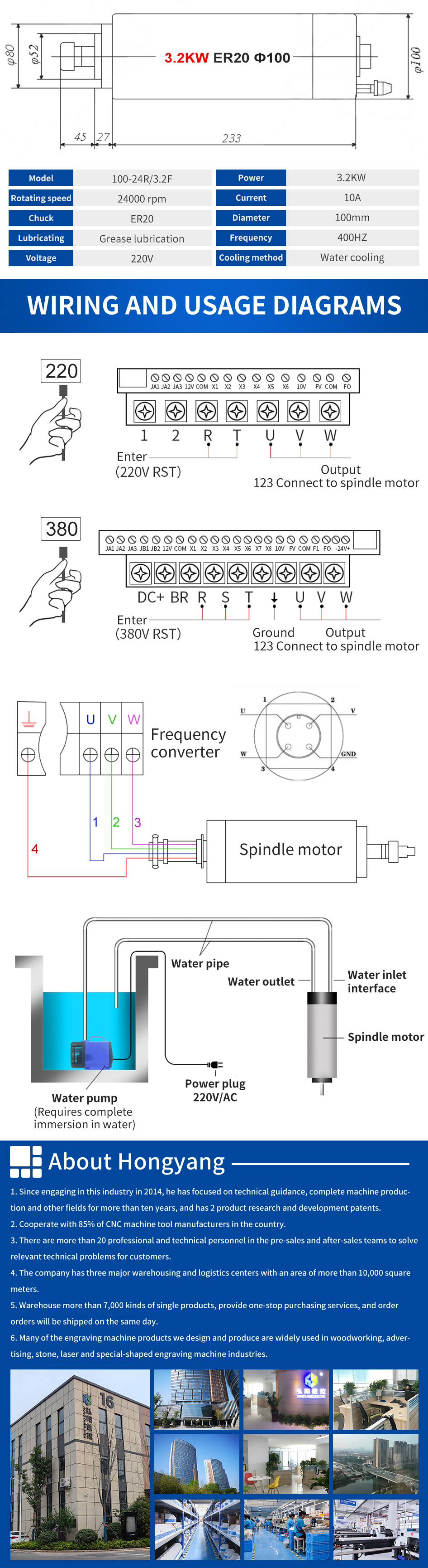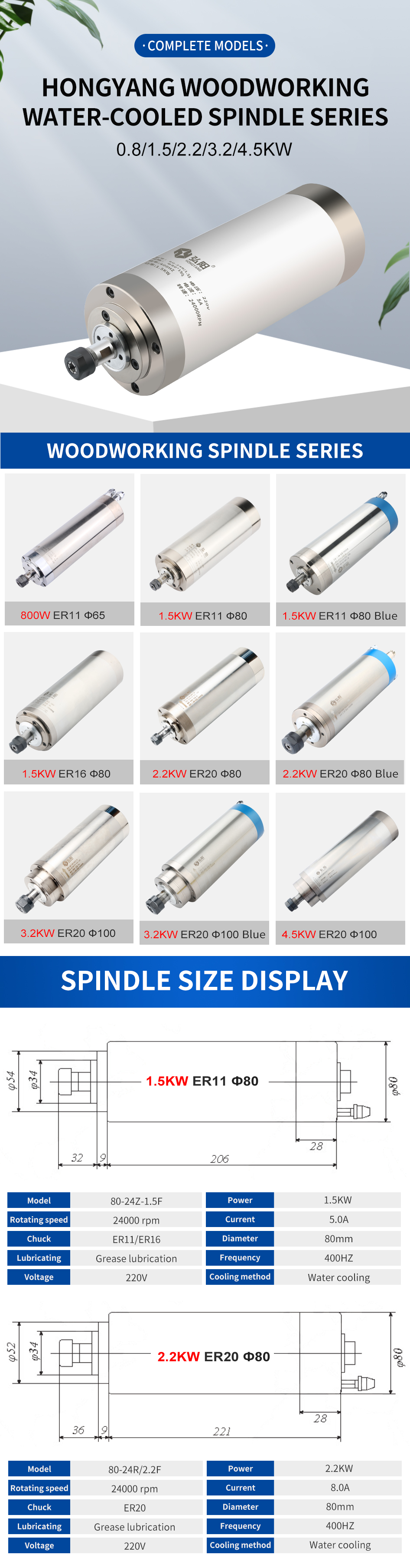 Hongyang Round Water-cooled Spindle Series 0.8KW-4.5KW