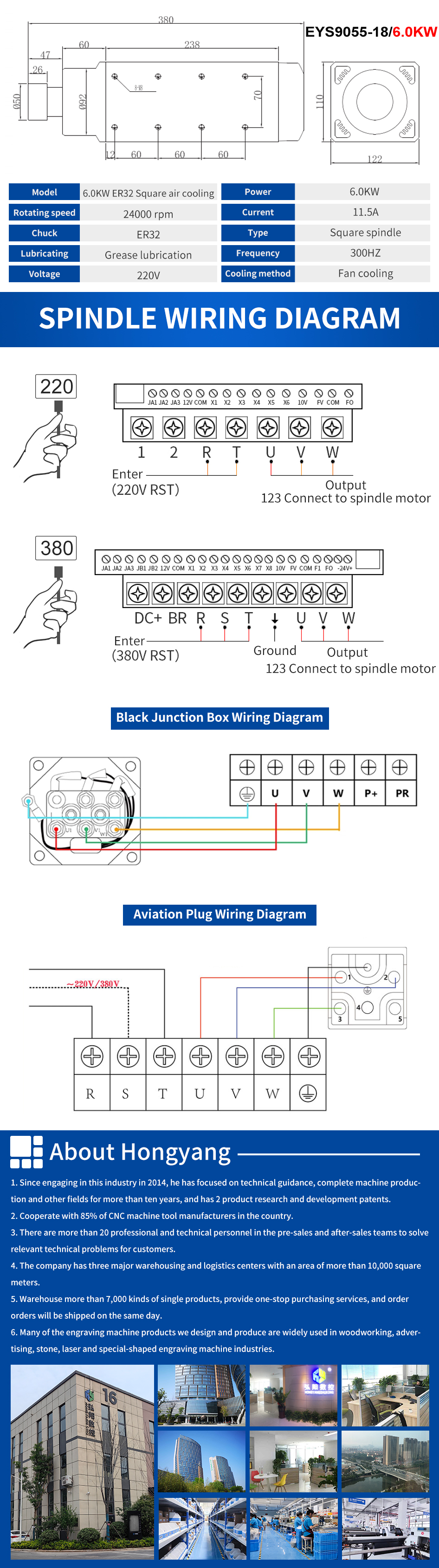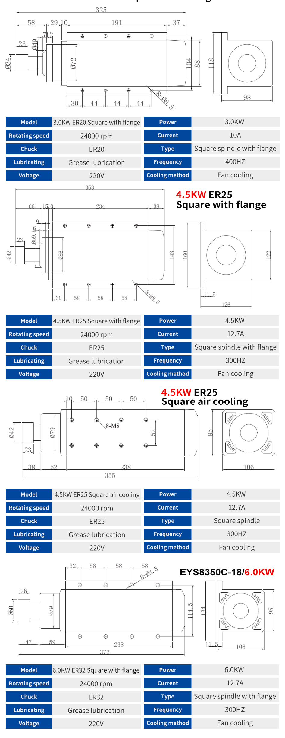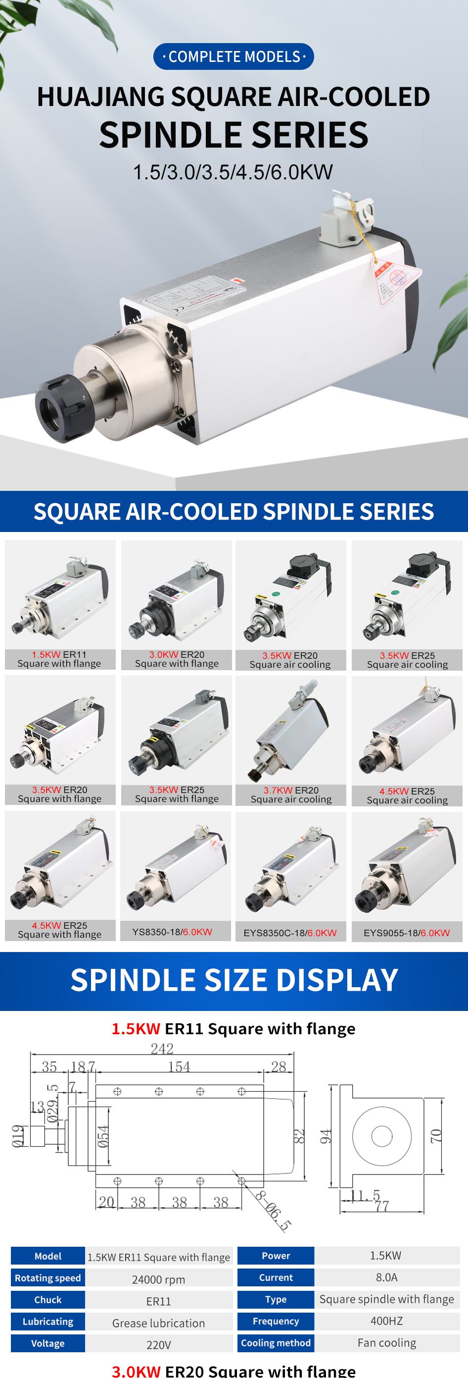 Huajiang Square Air-cooled Spindle Series 1.5KW-6.0KW