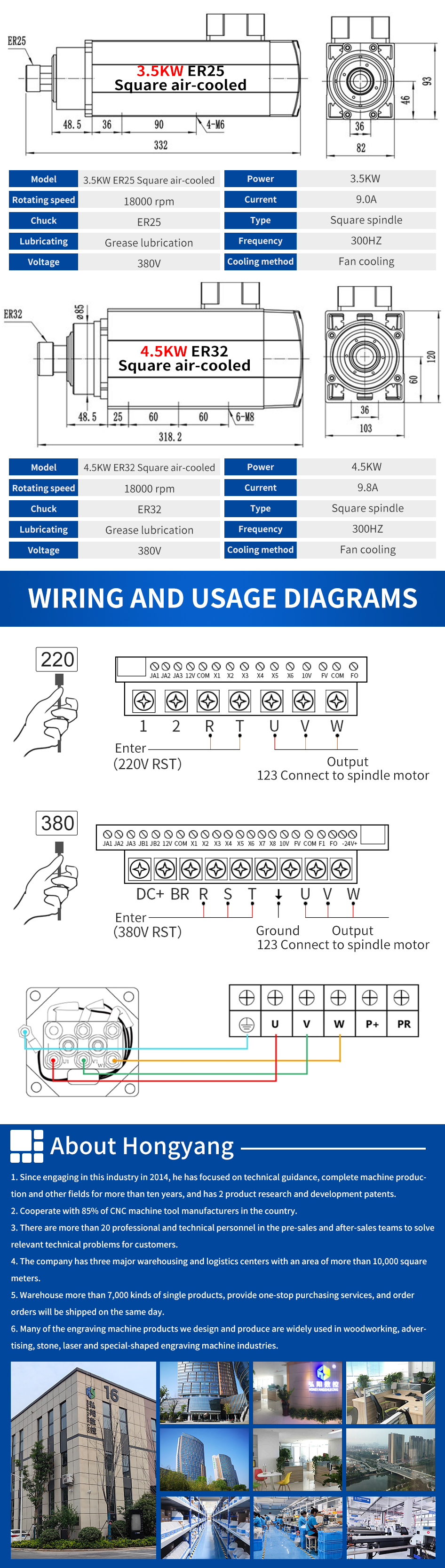 CHANGCHUAN Square Air-cooled Spindle Series 2.2KW-6.0KW